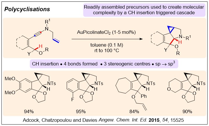 Divergent C-H Insertion-Cyclization Cascades of N-Allyl Ynamides; H. V. Adcock, E. Chatzopoulou, P. W. Davies* Angew. Chem. Int. Ed. 2015, 54, 15525-15529.